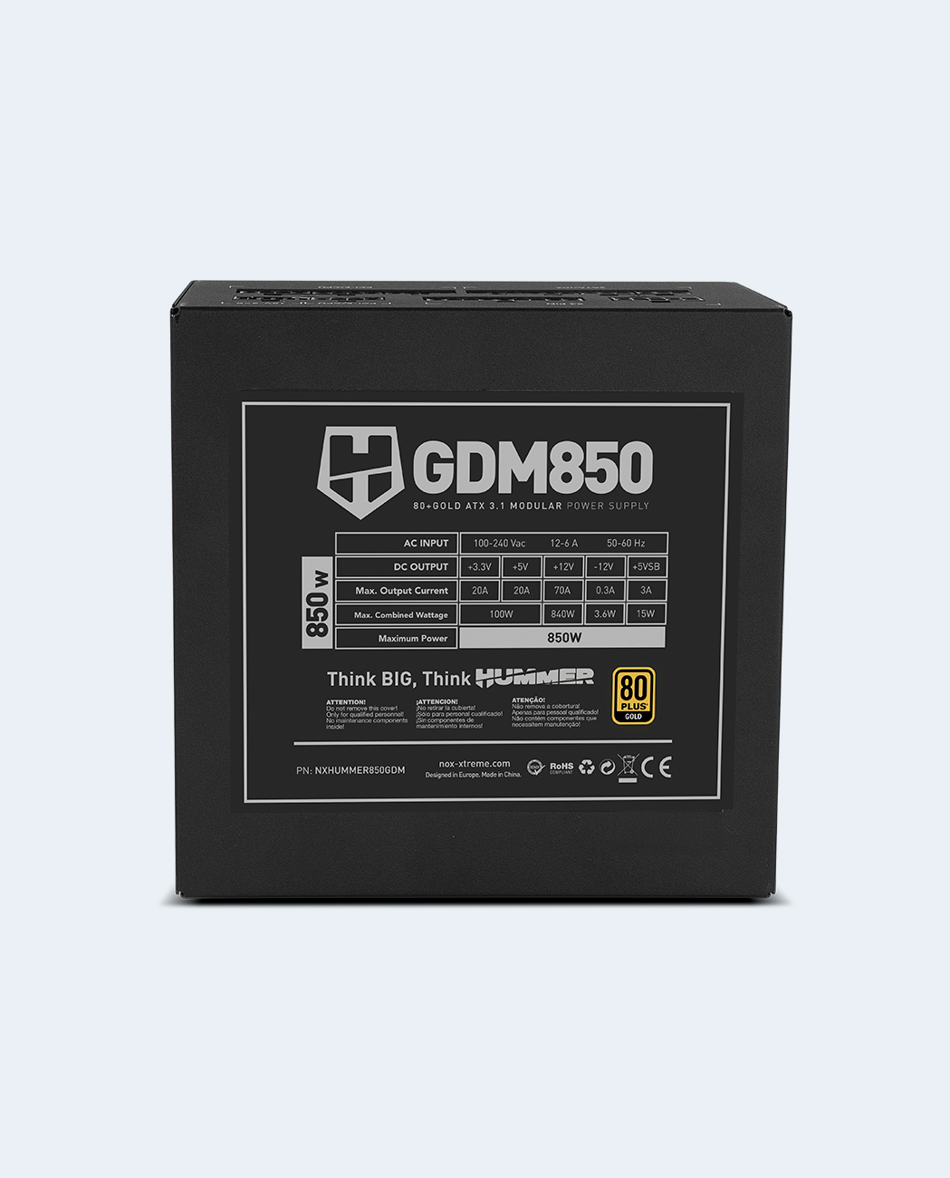 Diseñadas para garantizar una eficiencia de hasta el 90%, Hummer GDM, es la nueva serie de fuentes modulares con certificado 80 PLUS Gold de Nox. Estas fuentes de alimentación Nox garantizan una potencia constante y el rendimiento superior que exigen las configuraciones más exigentes.