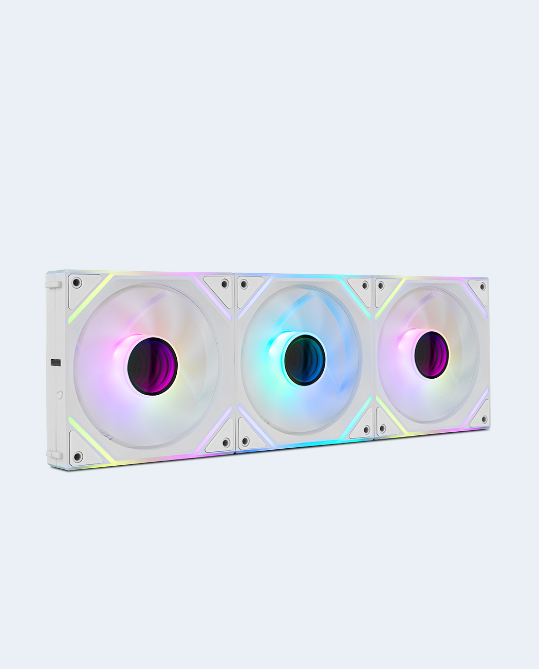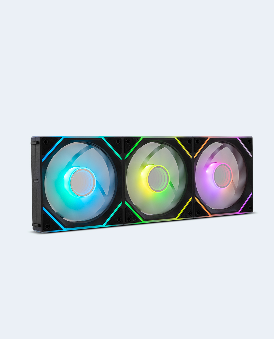 Disfruta de un gran espectáculo visual con el increíble diseño de este pack de ventiladores de Nox, incluyendo un espejo infinito tanto en su parte central como superior e inferior, creando un juego de luces inagotable que hará las delicias de los más entusiastas.