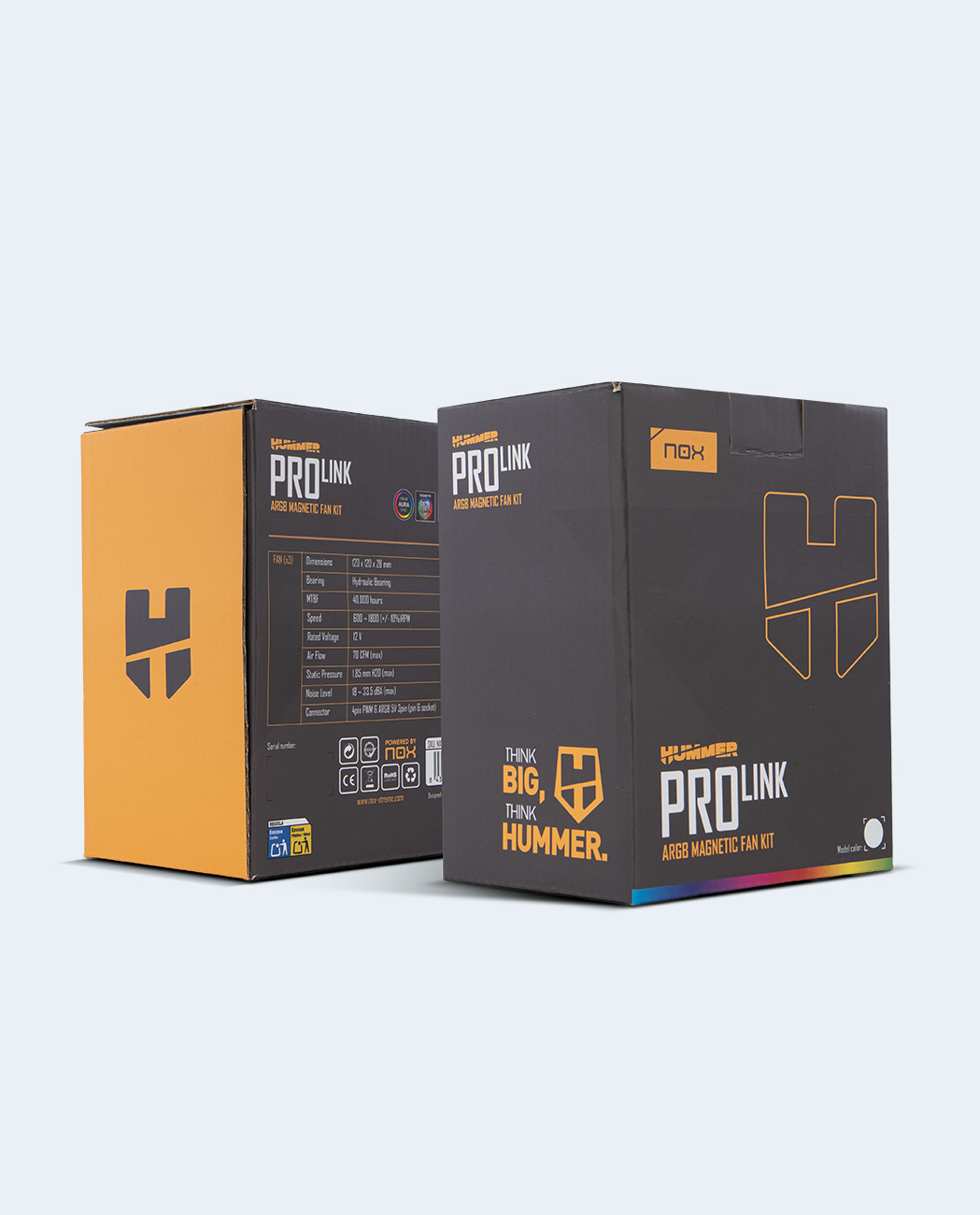 Su espectacular diseño revela un marco cuadrado con esquinas engomadas antivibración que ayudan a amortiguar el sonido, convirtiendo a los Hummer PRO LINK en una opción que ofrece una gran refrigeración a un ruido mínimo, siendo su máximo de 33.5 dBA. Maximiza la refrigeración de tu equipo manteniendo el nivel sonoro al mínimo.